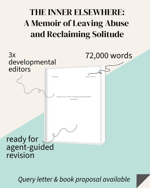 Despite everything I’d escaped, what I feared most was this: forgetting how to be alone. THE INNER ELSEWHERE is a 72,000-word memoir interweaving a harrowing abuse* narrative with reflections on solitude’s role in surviving harm and healing from it. By learning the love language of distance, I finally hear “the sound of me calling to myself years ago. And then, after all this time: the sound of me answering.” THE INNER ELSEWHERE is a timely testament to autonomy, inviting readers to consider how we make space to love and be loved without losing our sense of self–without forgetting that “I was someone before I was with someone.”